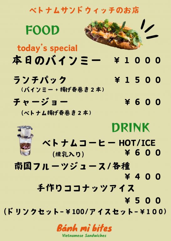 新店舗「バインミーバイツ」で販売するのは、ベトナム料理を代表するベトナムサンドイッチ「バインミー」のお店。