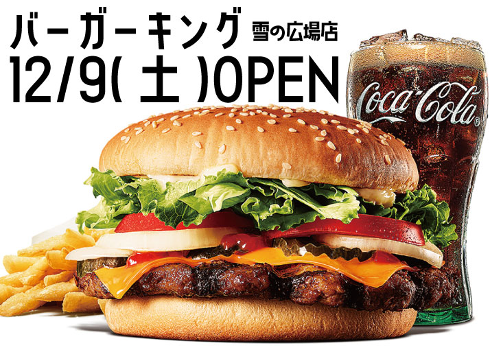 12/9(土)10時~ゴンドラ白樺駅(中間駅)雪の広場にあるバーガーキングがオープン!