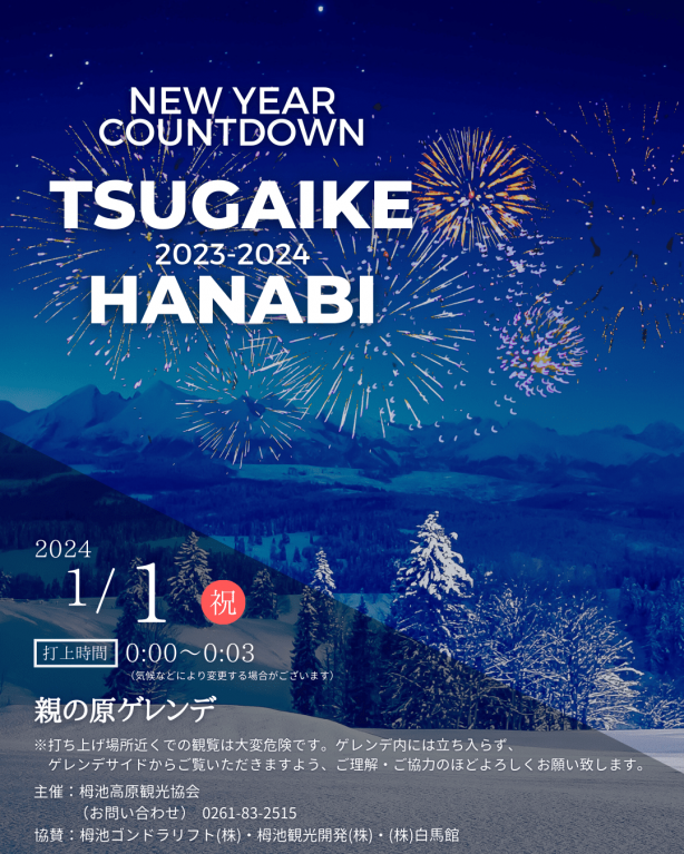 Spend the first moments of the year 2024 at Tsugaike for an unforgettable New Year’s memory! 🥳🎉