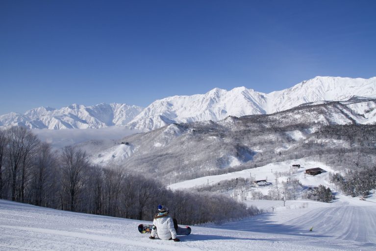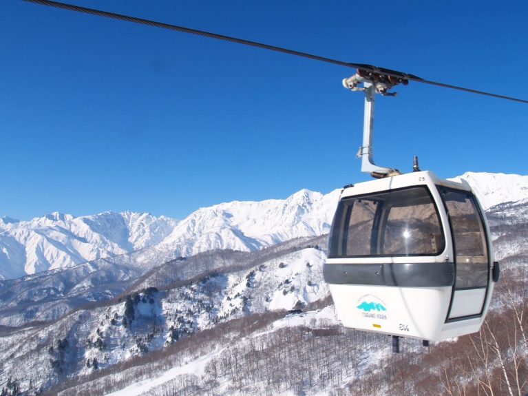 栂池マウンテンリゾートは白馬山麓の北側に位置し、北アルプスを背景に、初心者から上級者までが楽しめる最大5,000メートル、14コースを揃えます。