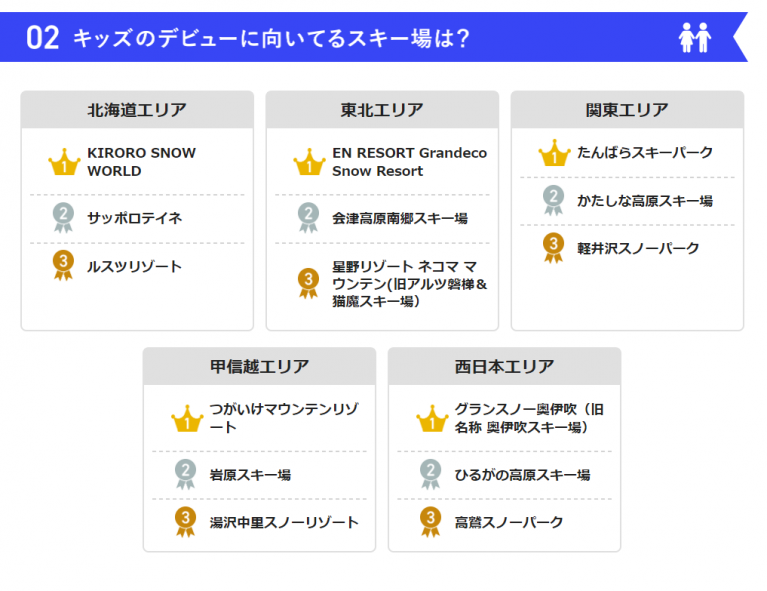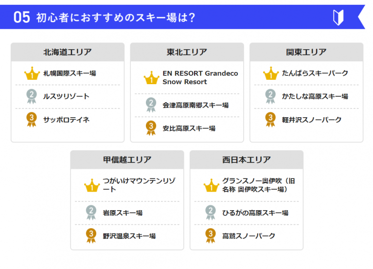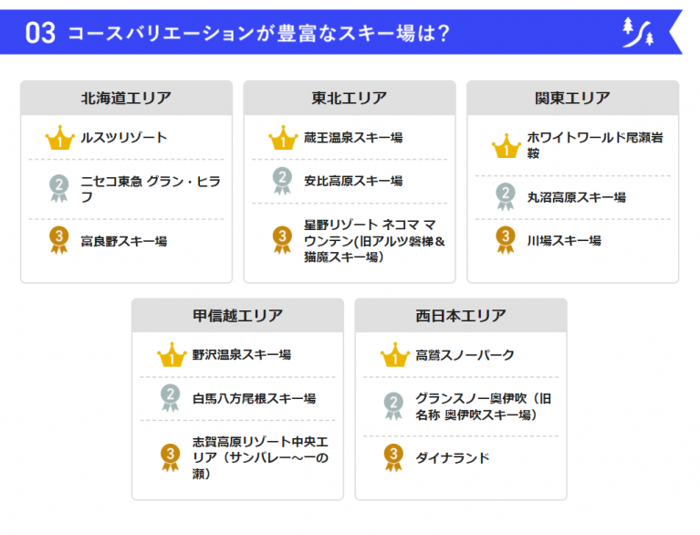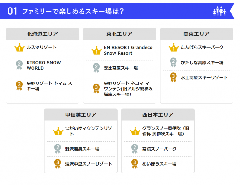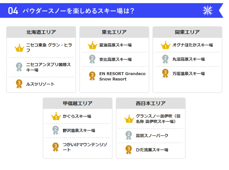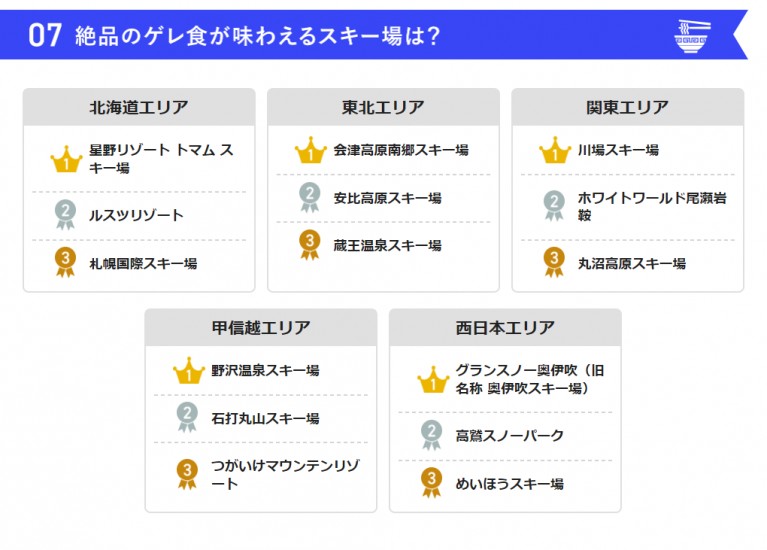 最終結果で7つのカテゴリーの内、甲信越エリアで栂池がランクインした5つのカテゴリーは下記となりました!