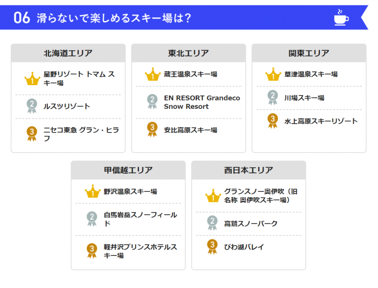 「2023-2024 SURF&SNOW SKI RESORT RANKING」最終結果発表!5つのカテゴリーでベスト3に選出されました!