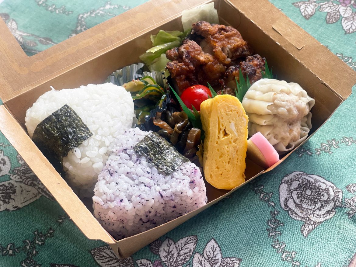◆メニュー:おにぎり2種(しお・しそ)、山賊焼き、焼売、小谷漬け、卵焼き、旨塩キャベツ、トマト、胡瓜のナムル、かまぼこ※アレルゲン:大豆、小麦、卵
