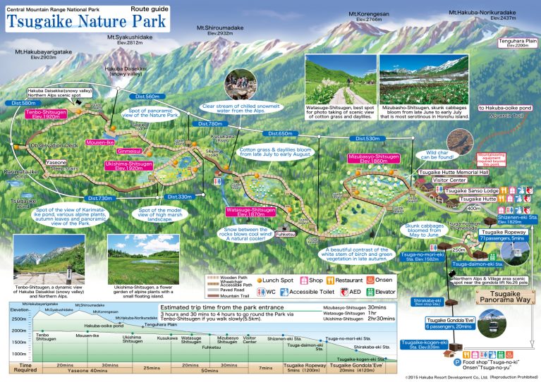 栂池自然園のトレッキングマップを下記にご用意しました。ご計画にお役立てください。