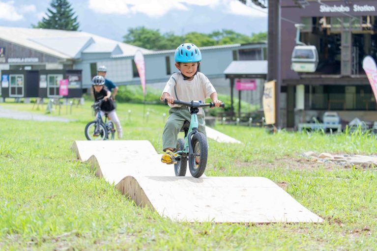 ゴンドラリフト「イヴ」白樺駅(中間駅)雪の広場エリアに広がる「つがいけアウトドアビレッジ」に新たに「サイクルパーク」が8/1(木)オープン!
