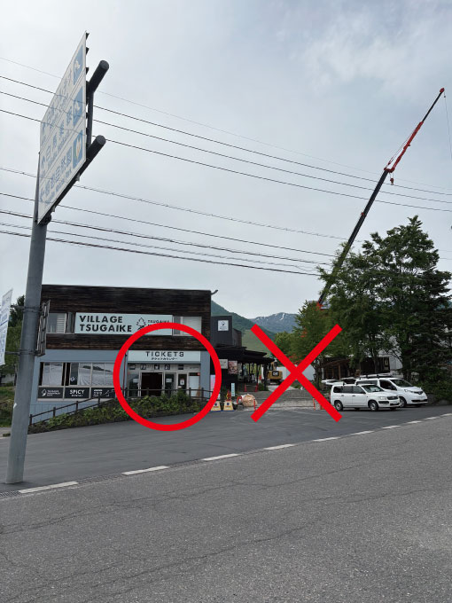 通行止め区域を避けるため、ヴィレッジつがいけ(室内)~ゴンドラリフト「イヴ」乗車口までの代替ルートをご利用ください。