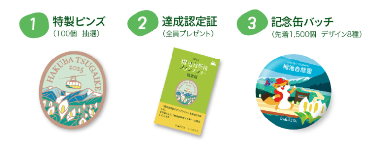 条件: 2025年6月21日(土)~2025年11月2日(日)の期間中に、「栂池自然園スタンプラリー」と「白馬八方尾根スタンプラリー」の両方エリアのスタンプラリー達成、もしくは両エリアでの登山チェックインポイントのスタンプ獲得につき1枚プレゼント
