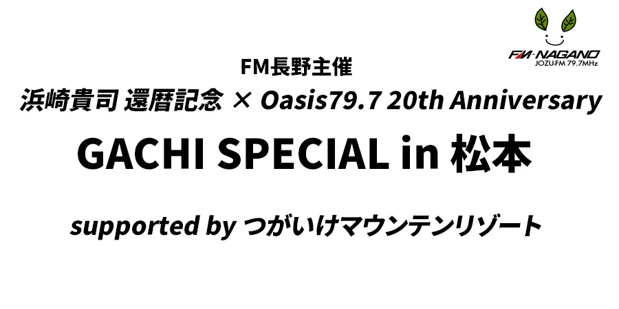8/6(水)更新! FM長野主催 「浜崎貴司×Oasis79.7 20th Anniversary GACHI SPECIAL in 松本」サポート決定!