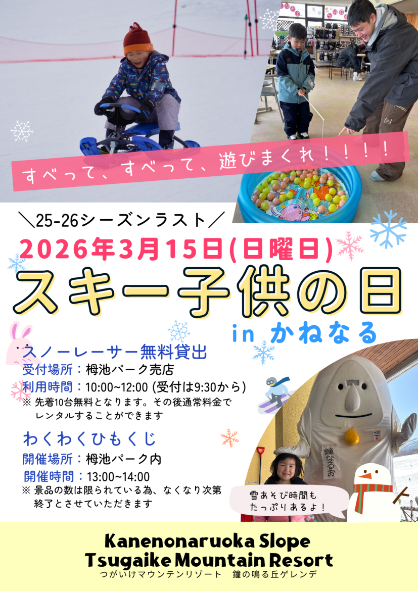 3/15(日)スキーこどもの日!かねなるゲレンデで楽しもう♪