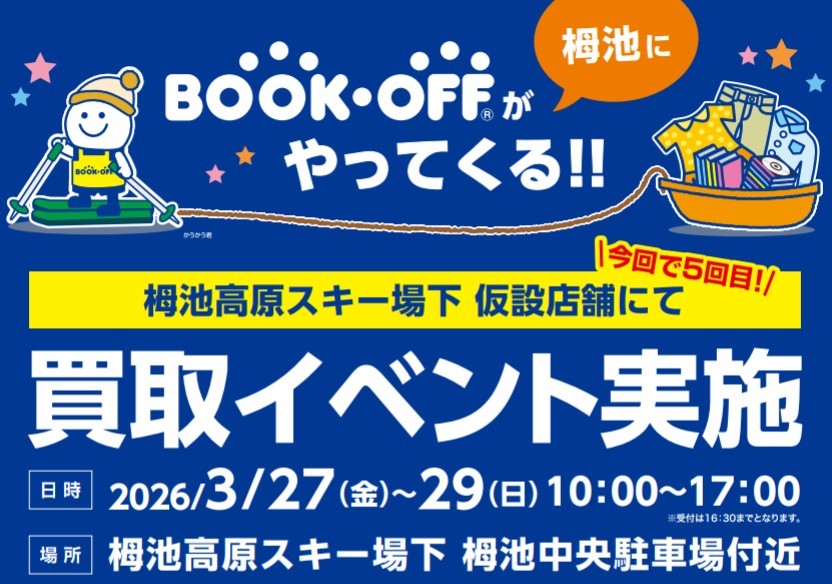 毎年好評のBOOKOFF買取イベントが、今年もつがいけマウンテンリゾートにて開催されます!