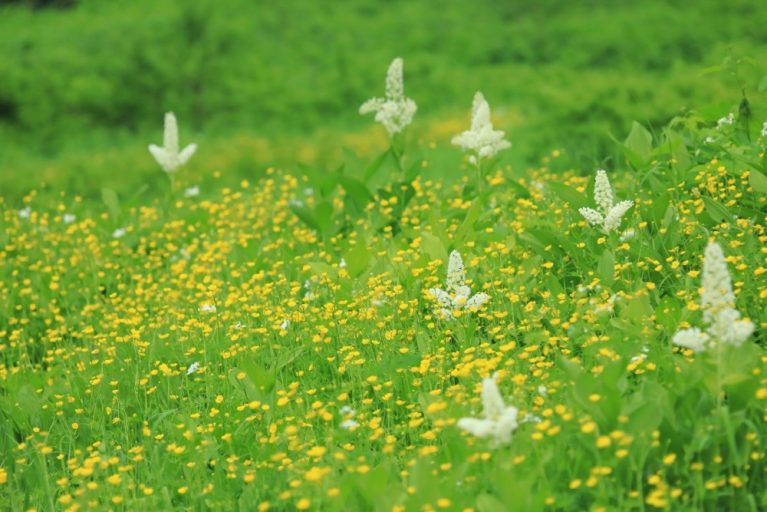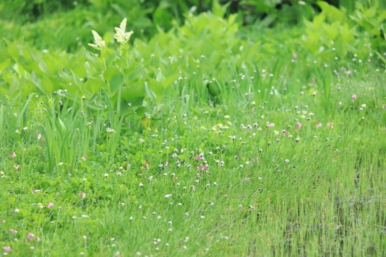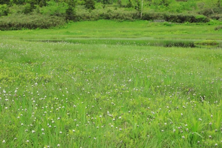 チングルマやミヤマキンポウゲなどが群生していて、ワタスゲも少し綿毛になりつつあり、湿原の中がとても鮮やかになっています。