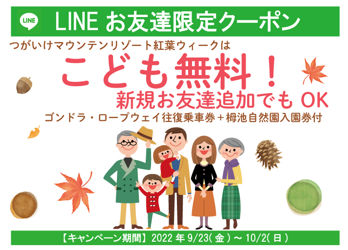 10/22(土)・23(日)大好評につき、期間延長!LINEお友達追加で「こども無料クーポン」をGETしよう!