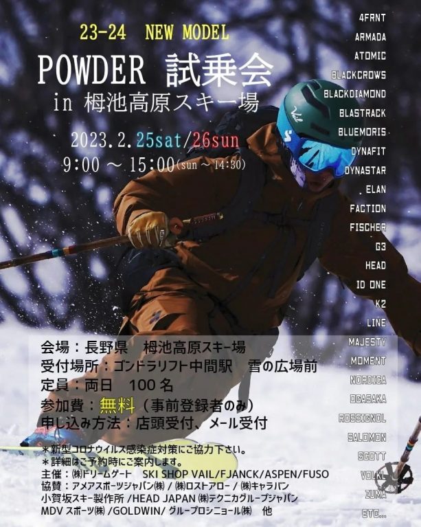 2/25(土)、26(日)2024 NEW MODEL POWDER & ヒールフリー試乗会開催!