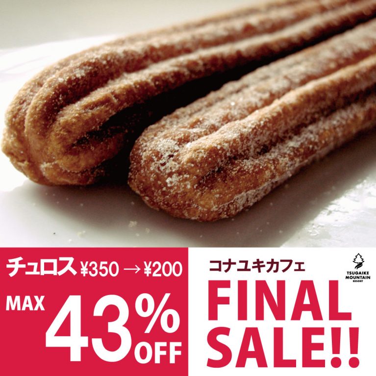 ゴンドラ中間駅雪の広場「コナユキカフェ」にてLINEお友達限定「チュロス祭り」クーポンをご提示頂くと、通常350円→200円にてご提供!