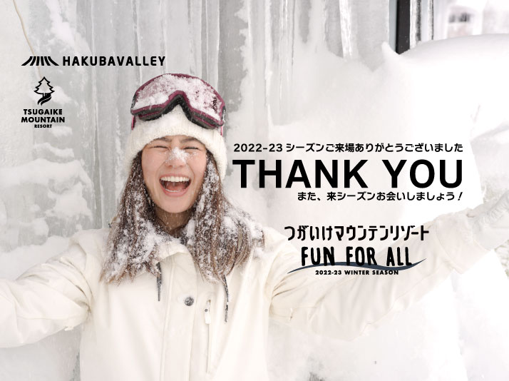 つがいけマウンテンリゾートは、本日5月7日を持ちまして、22-23ウィンターシーズンの営業を終了させて頂きます。