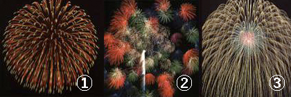 この花火はどこから見ても、丸い花火です。上空で直径約150mの大きさに開きます。