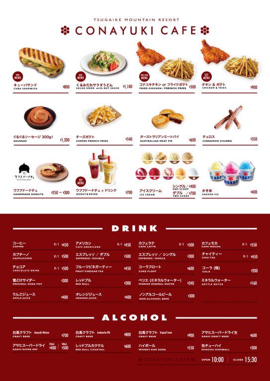 ゴンドラ白樺駅下車すぐ「コナユキカフェ」でランチ&カフェタイムをお過ごしください♪