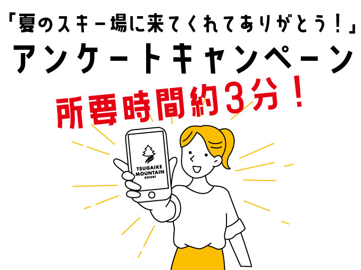 「夏のスキー場にきてくれてありがとう」アンケート回答で、ヴィレッジつがいけ2階ショップ即5%OFF!