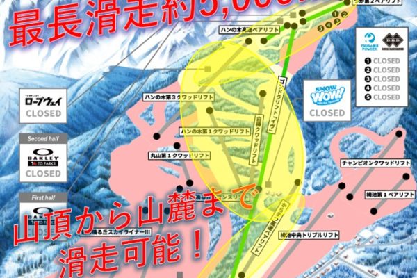 | 第4駐車場 | 閉鎖 | 無料 | 300台 | チャンピオンゲレンデまで約400m | 〇 | - | - | 不可 |