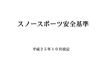 この基準は、スキー場におけるスキーヤーおよびスキー場管理者が守るべき統一的なスノースポーツ安全基準(抜粋)を定め、両者にその遵守を強く求めることによってスキー事故の発生を未然に防止し、スノースポーツの健全な発展に寄与することを目的とする。