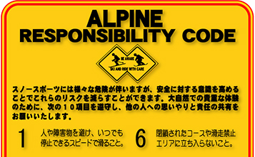 スノースポーツは、誰でも好きな所を自由に滑ることのできるスポーツであるが、必然的に危険を伴う。スキーヤーが自己の責任のもとで滑らなければならない。