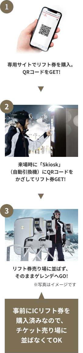 ※QRコードはリフト券発券に必要となりますので大切に保管(スマホ画面もしくは印刷)してください。